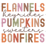 Flannels Heyrides Pumpkins Sweaters Bonefires DTF Transfer